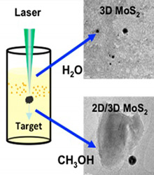 Synthesis of colloidal 2D/3D MoS2 nanostructures by pulsed laser ablation in an organic liquid environment