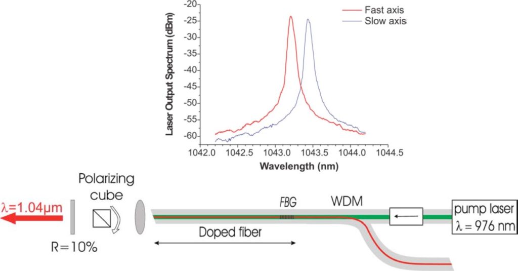 Fiber Bragg gratings (FBGs) are key components for optical telecommunication systems and sensoring applications, allowing the realization of integrated devices by avoiding complex alignment schemes and decreasing coupling losses. FBGs also allow in-line spectral control of guided light and can be used as narrow-band reflectors for compact fiber laser applications. They are constituted of a periodic refractive index change in the fiber core.